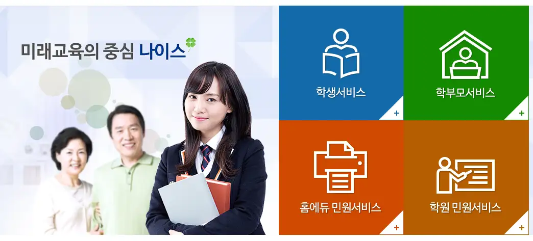 나이스 시스템에서 학부모에게 제공하는 서비스는 맞벌이가 많은 비율을 차지하고 있는 현재 학부모가 학교를 직접 방문하지 않고도 자녀의 학교생활을 확인 할 수 있도록 하는 것입니다.